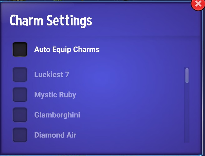 The ideal solution would be a quick way to auto-equip one charm type. This could be a true “Uncheck All” button, or simply the ability to check just the Unicorn charms without having the “Auto-Equip” feature automatically check all the others. That list of unique charms is deep, and it would take a lot of time to uncheck them all if I wanted to use the auto-equip feature as it is now. Please keep in mind that many players are also charm collectors and do not wish to use all the charms they have on hand.