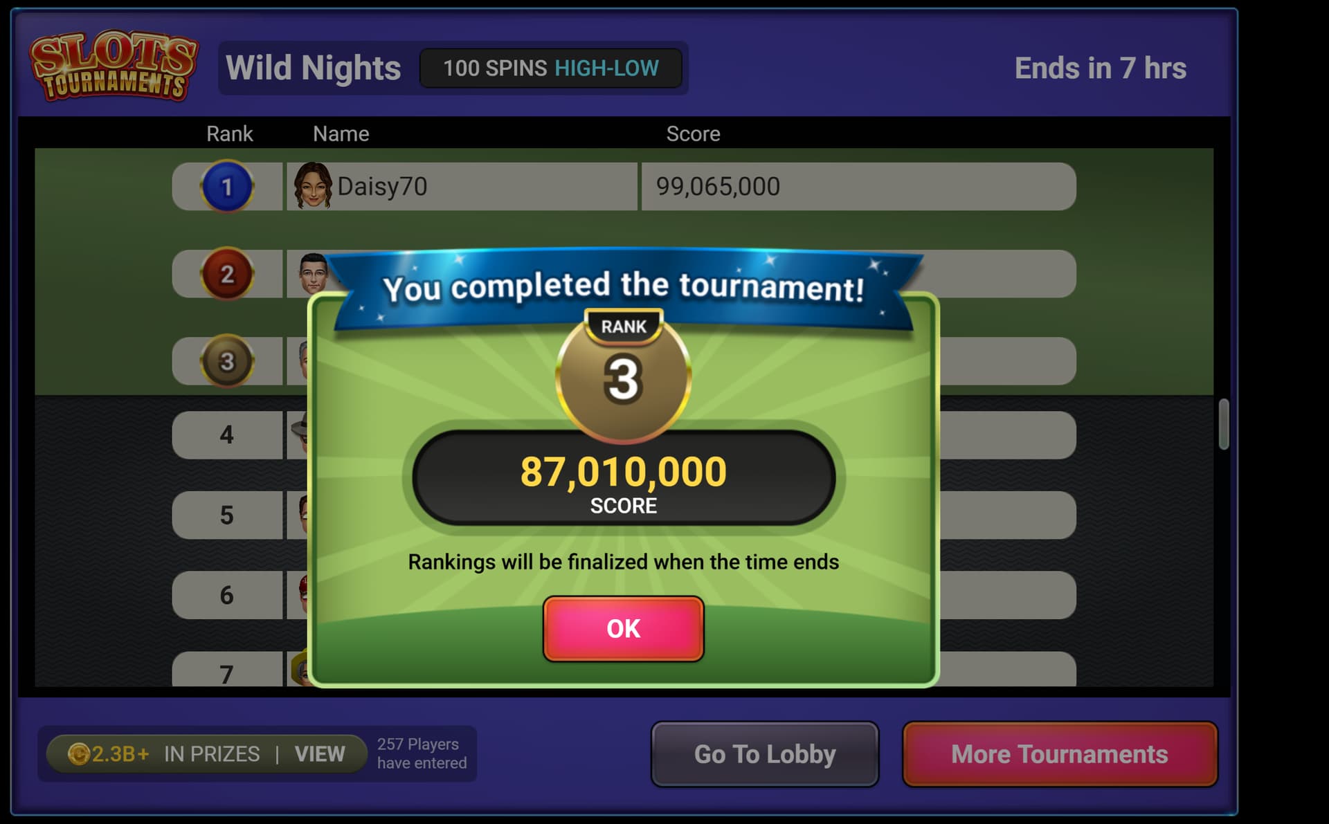 Also, it is my opinion players who do not complete the 100 Spins not be included in the Scoring, especially on the High/Low Games! How can someone get 0 Coins on 100 Spins? That seems like “Cheating” to me? ![]()