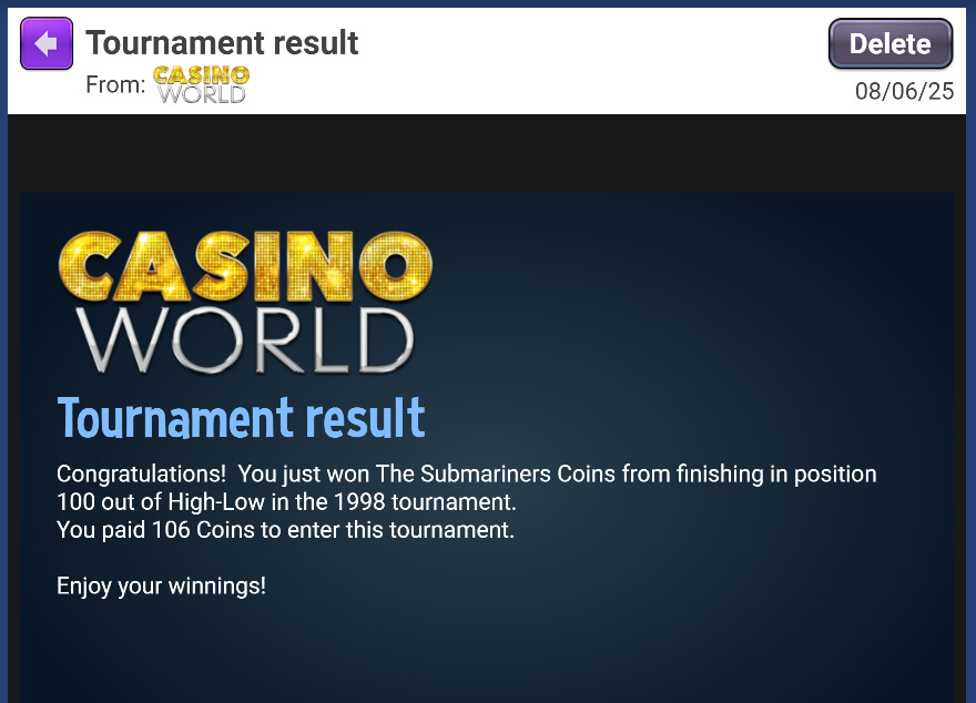 I thought I may have won 106 coins but when I went into the tournament game it seems I won 250,000 coins